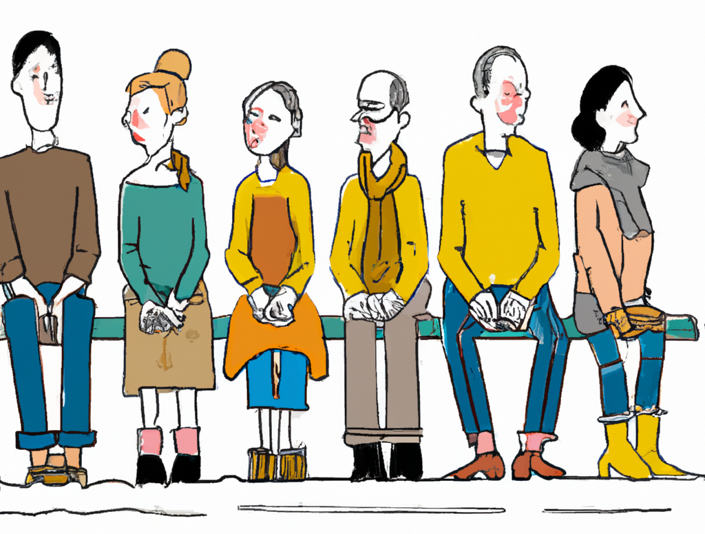 Six neighbors – Arden, Brighton, Cove, Halston, Kingsley, and Lexington – sit on a bench every morning to watch the pigeons. Each morning, each neighbor sits in the same place on the bench.