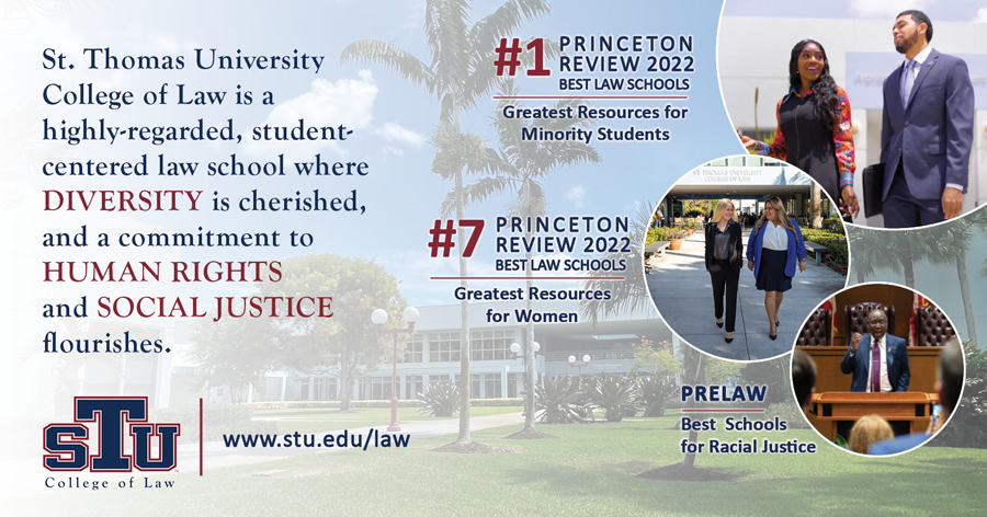 One of 11 of the Sunshine State’s law schools, St. Thomas University College of Law has long been recognized for the diversity of its student body and the sense of community among its students. Located between vibrant legal communities in Miami and Fort Lauderdale, St. Thomas Law offers clinical, externship, internship, and part-time employment opportunities in both. The cultural diversity, commitment to professionalism and small class size make studying law at prestigious St. Thomas Law a unique and enriching experience.